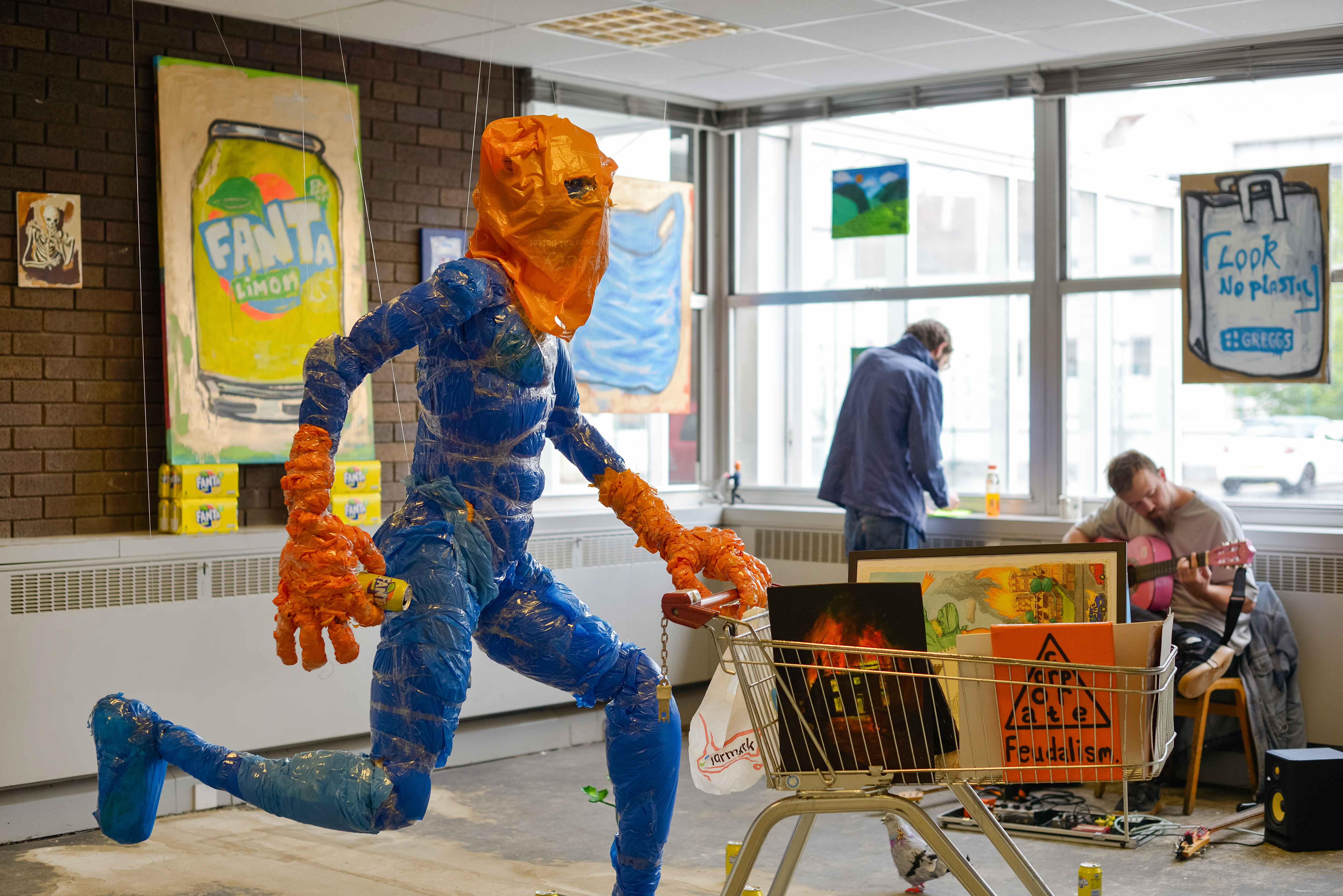 In the shade of the Fanta Lemon tree closes out the Soup PtVI Residency as a whole. B4g_lord approaches capitalism and neofeudalism with his trademark wit and prolific output of paintings, sculptures and drawings, all from the ground level of the concrete jungle. Watch out for bags, pigeons and shopping trolleys!